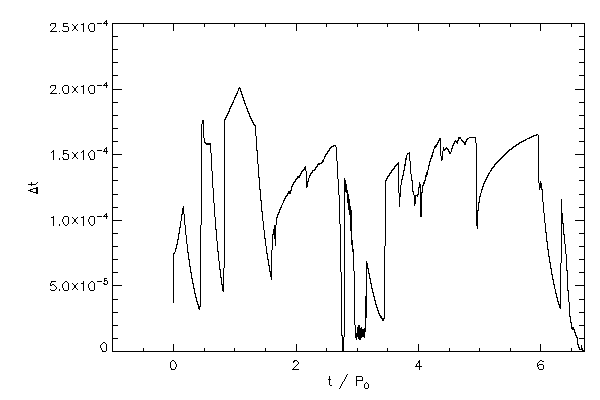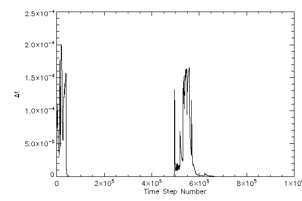 Simulation timestep increment vs time and step number